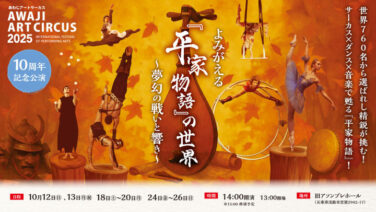 イベント コンテンポラリーサーカスショー「Awaji Art Circus 2025」開催|淡路島イベント 淡路島でコンテンポラリーサーカスショー開催淡路市の旧淡路市立アソンブレホールで、「Awaji Art Circus 2025」が、2025年10月12日(日)から26日(日)の期間で開催されます。(全8公演)「Awaji Art Circu... 2025.09.20 イベント