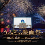 大浜海岸に幅9メートルの巨大スクリーンを吊るして上映する「うみぞら映画祭」が、2023年5月27日(土)~28日(日)の2日間で開催されます。
